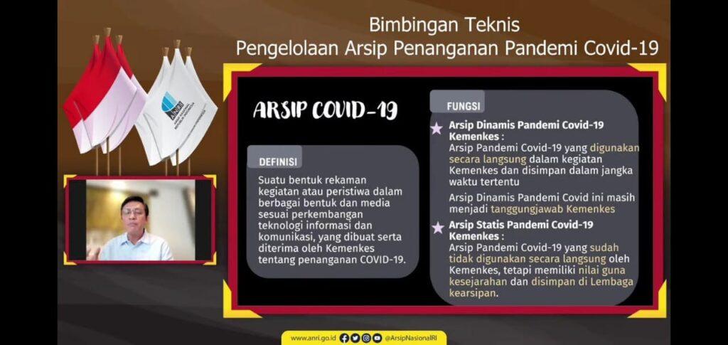 RejangLebong(Jumat/3/desember/2021)_ Arsip Covid-19 Merupakan Suatu Bentuk rekaman kegiatan atau peristiwa dalam berbagai bentuk dan media sesuai perkembangan teknologi informasi dan komunikasi, yang dibuat serta diterima oleh Kemenkes tentang penanganan COVID-19. Fungsi meliputi (1). Arsip Dinamis Pandemi Covid-19 Kemenkes : Arsip Pandemi Covid-19 yang digunakan secara langsung dalam kegiatan kemenkes dan disiman dalam jangka waktu tertentu, arsip dinamis pandemi covid ini masih menjadi tanggung jawab kemenkes. (2). Arsip statis Pandemi Covid-19 Kemenkes : Arsip Pandemi Covid-19 yang sudah tidak digunakan secara langsung oleh Kemenkes, tetap memiliki nilai guna kesejahterahan dan disimpan dilembaga kearsipan.