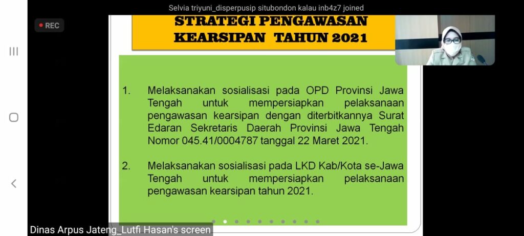 Monitoring dan sharing Knowledge Pelaksanaan Pengawasan Kearsipan Daerah (Webinar)